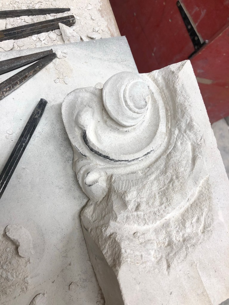 1st day back carving, a small copy of a Gothic stiff leaf detail.