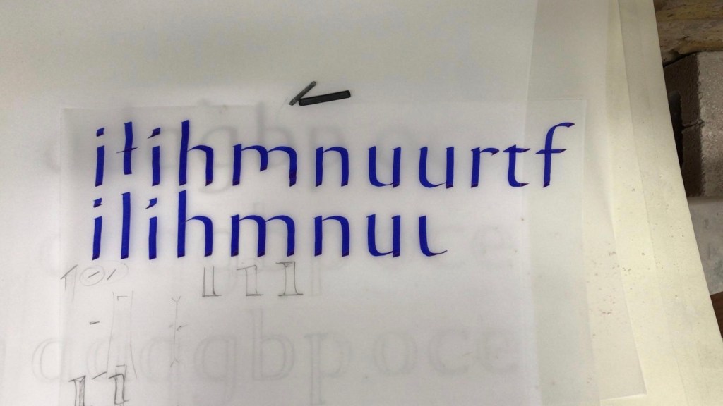 Quickly moved onto drawing the lower case letters. The work over summer and the lessons with Ieuan had definitely helped but I was still not quite getting a consistent curve or flow between the letters.