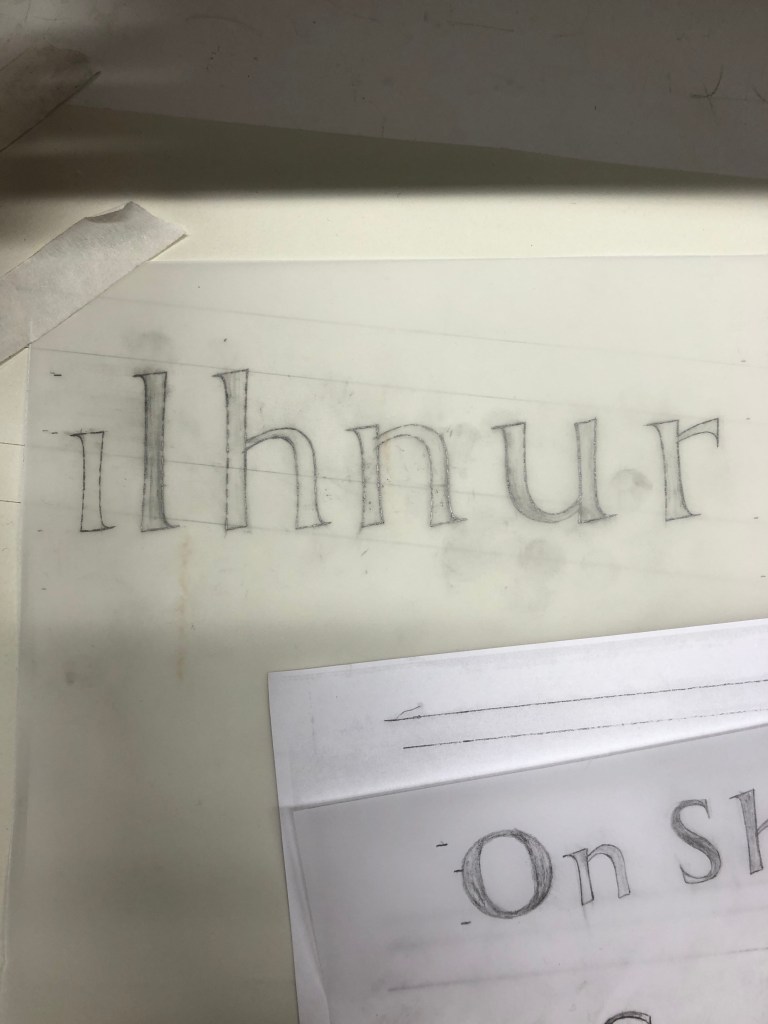 After 4:30 I moved onto some very small letter that Tom has set out for our 2nd term project. I have been planning to carve ‘On Shoulders of Giants We Stand’ for a long time so thought it was as good a time as any to start this.