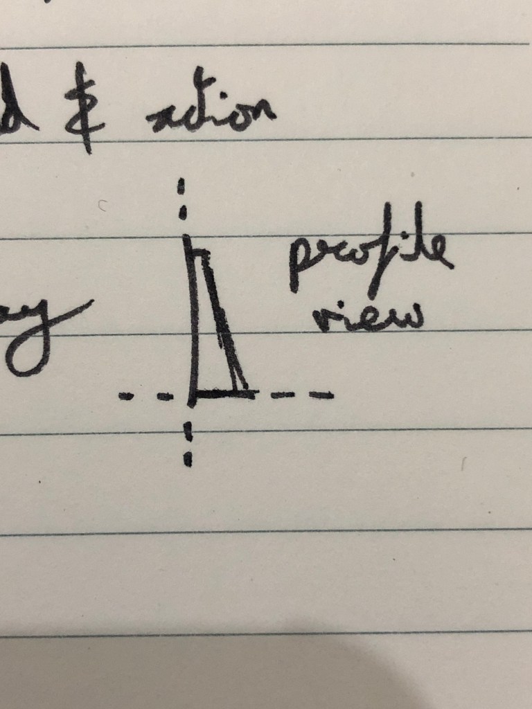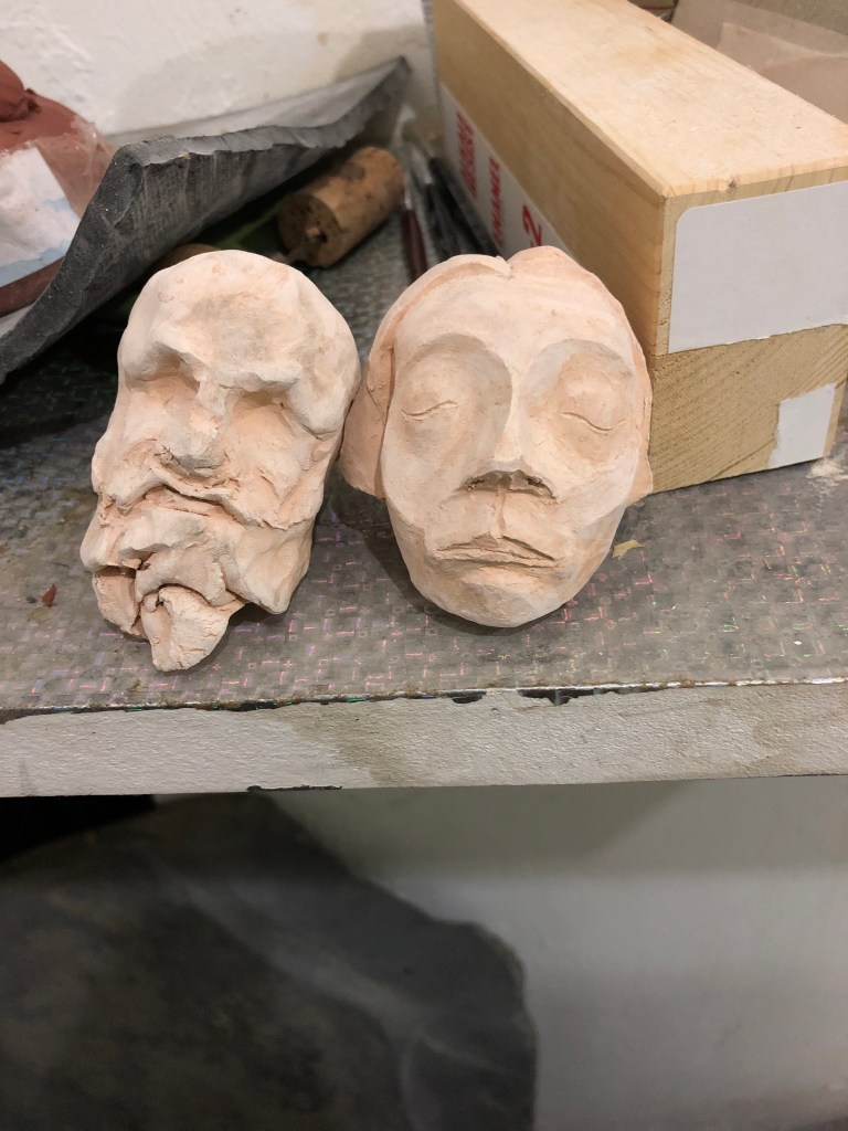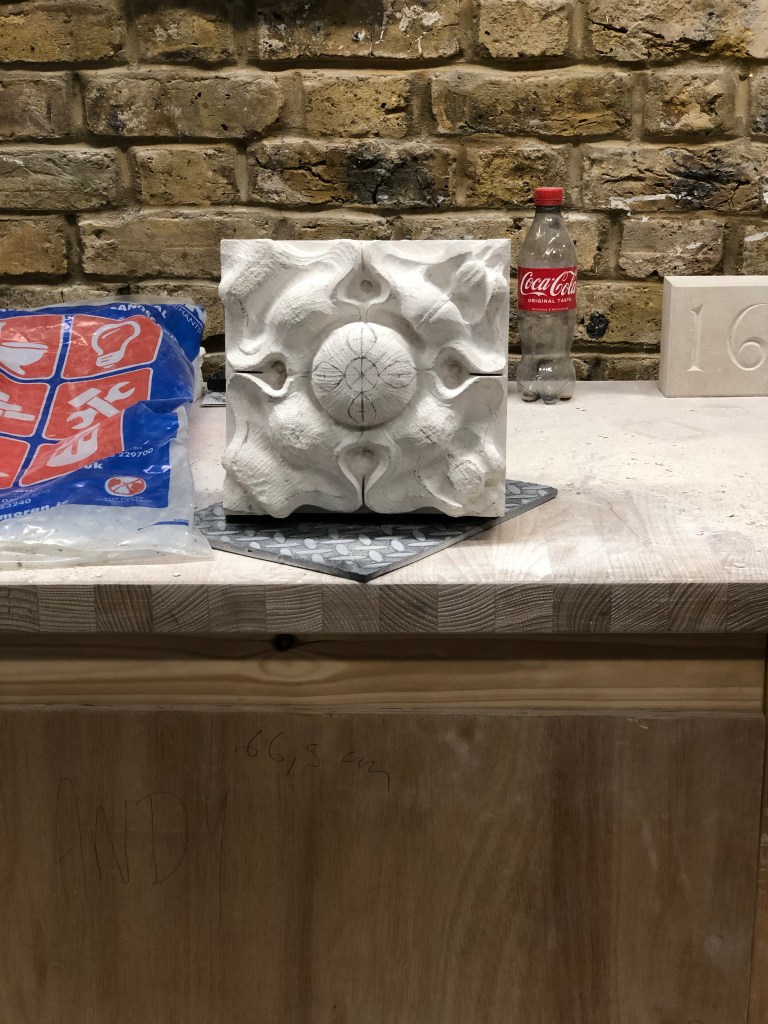 Started out modelling while the teachers went around the 3rd years. Nina wasn’t happy with that so moved onto the carving again at 10:30/11. Spoke to Kim and she said due to the length of the figure and where the viewer is the highest point should be the feet and knees, then drop back to the upper body, see pic.