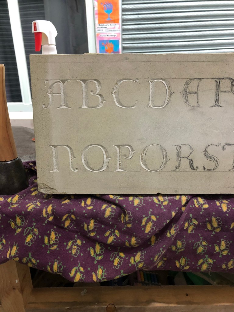 In studio now working on lead letters. Going slowly even though I didn’t need to finish the centre of the letters, just get the edges in.