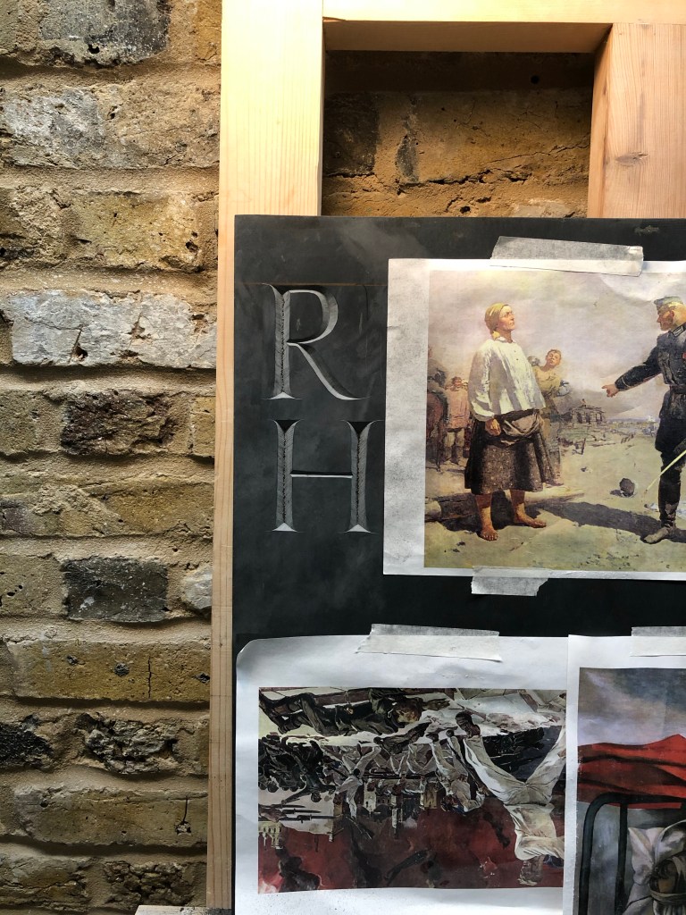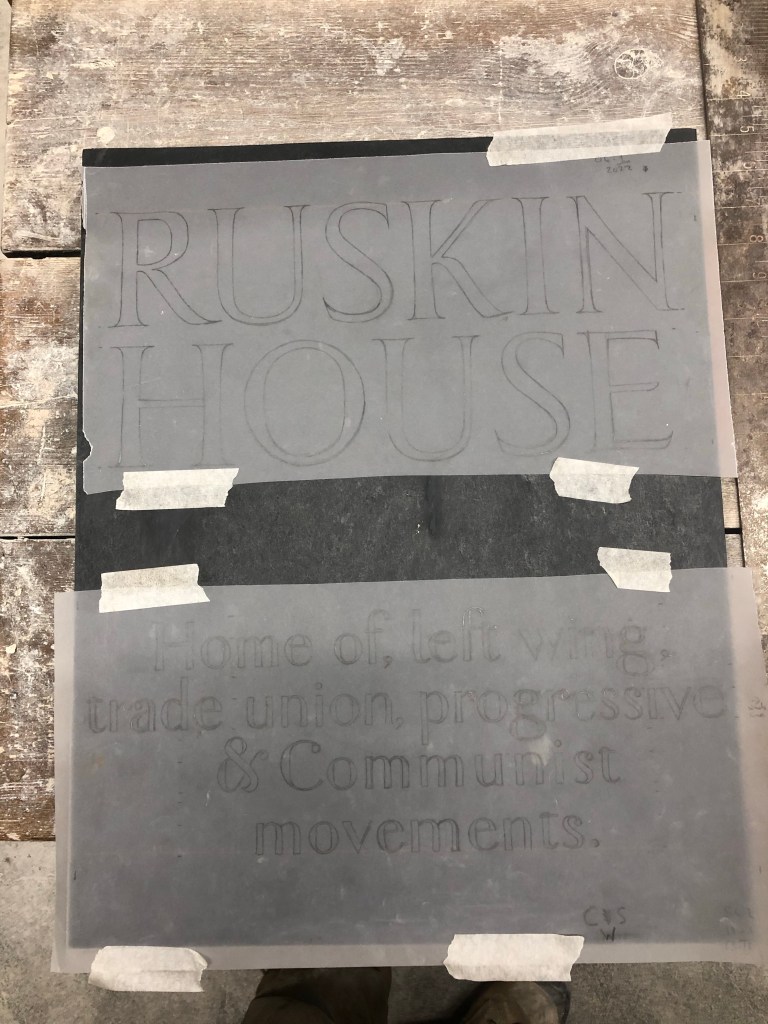 Spent today finalising the layout and spacing of the pub sign for Ruskin House, turned up late and spent far too long transferring the inscription.