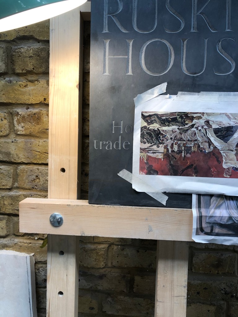 Carved six and a half of the small letters, was a decent start considering I started at five. The small letters are tricky, trying to work fast though. Definitely need a full day to get into it. Happy with the letter forms despite the weak carving.