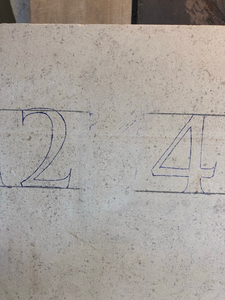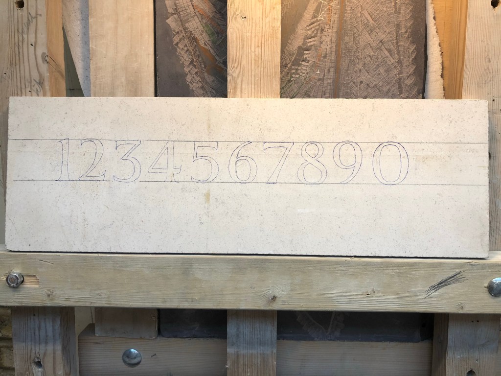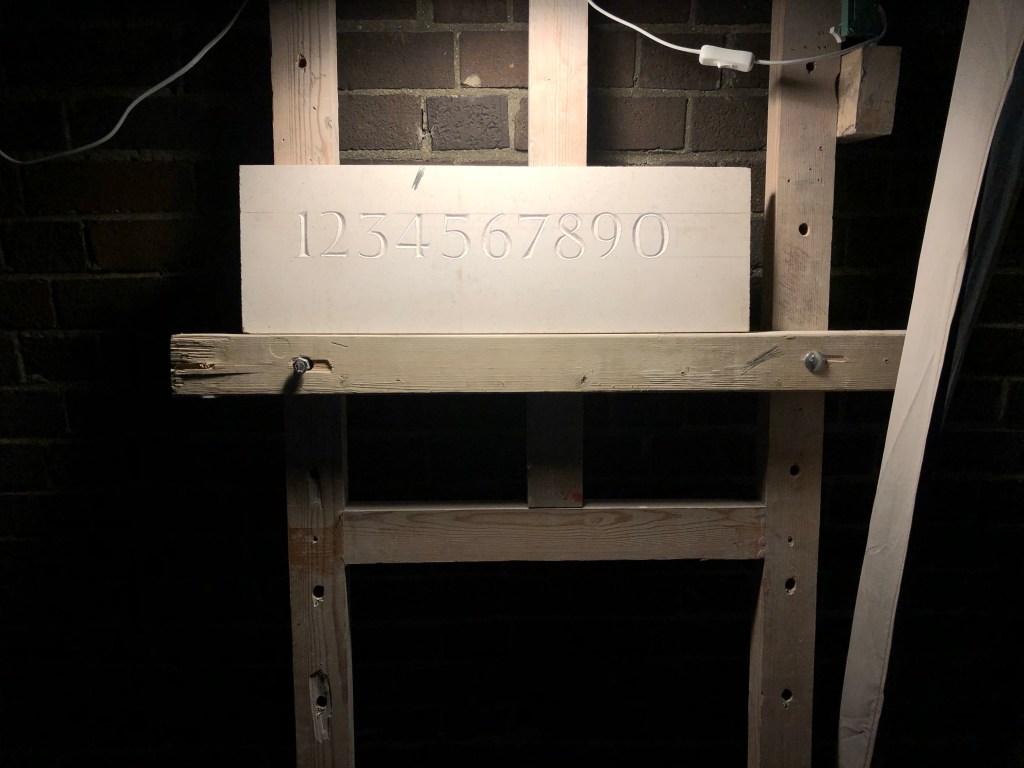 Had to stop for a bronze pour with two letters left. Managed to finish at 18:10. Then rubbed up the stone and packed up. Very good day today, haven’t had a full day of lettering in far too long.