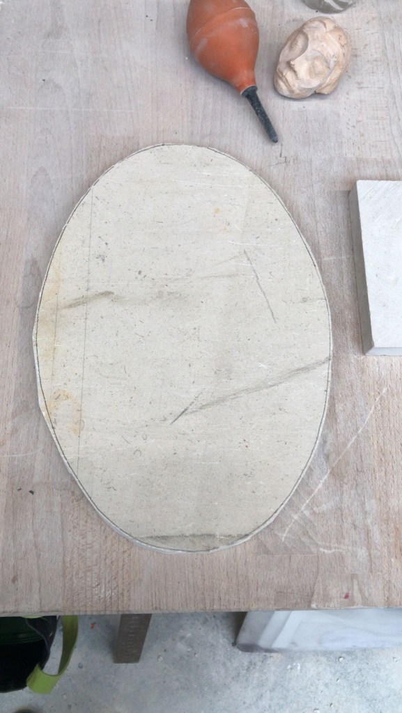 Once I’d done this I shaped the stone in the cutting room. Didn’t take long but need to hand sand the side to get the curve consistent and smooth.
