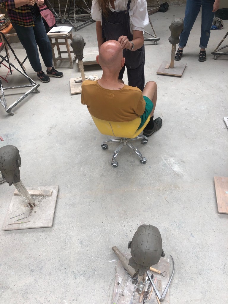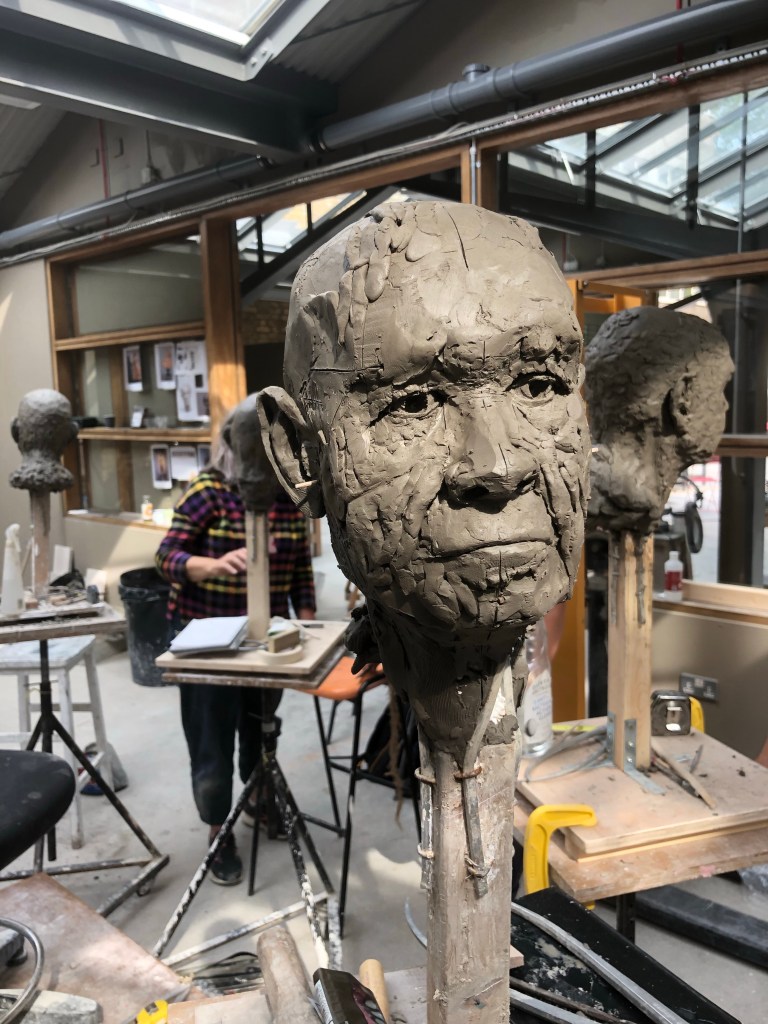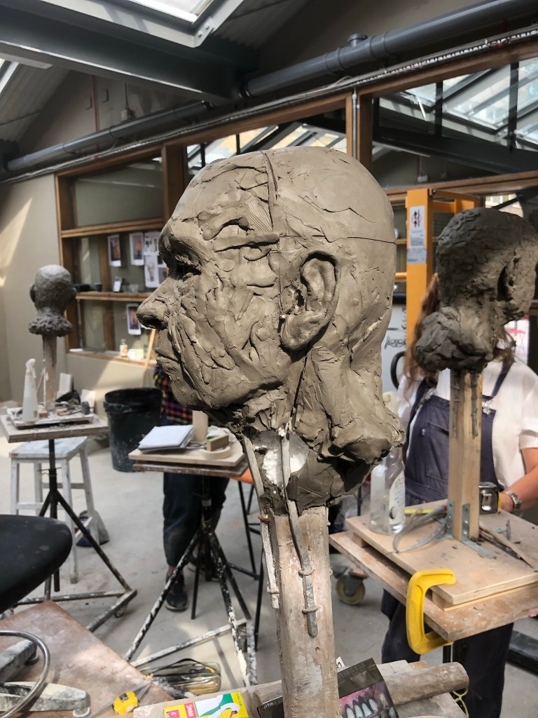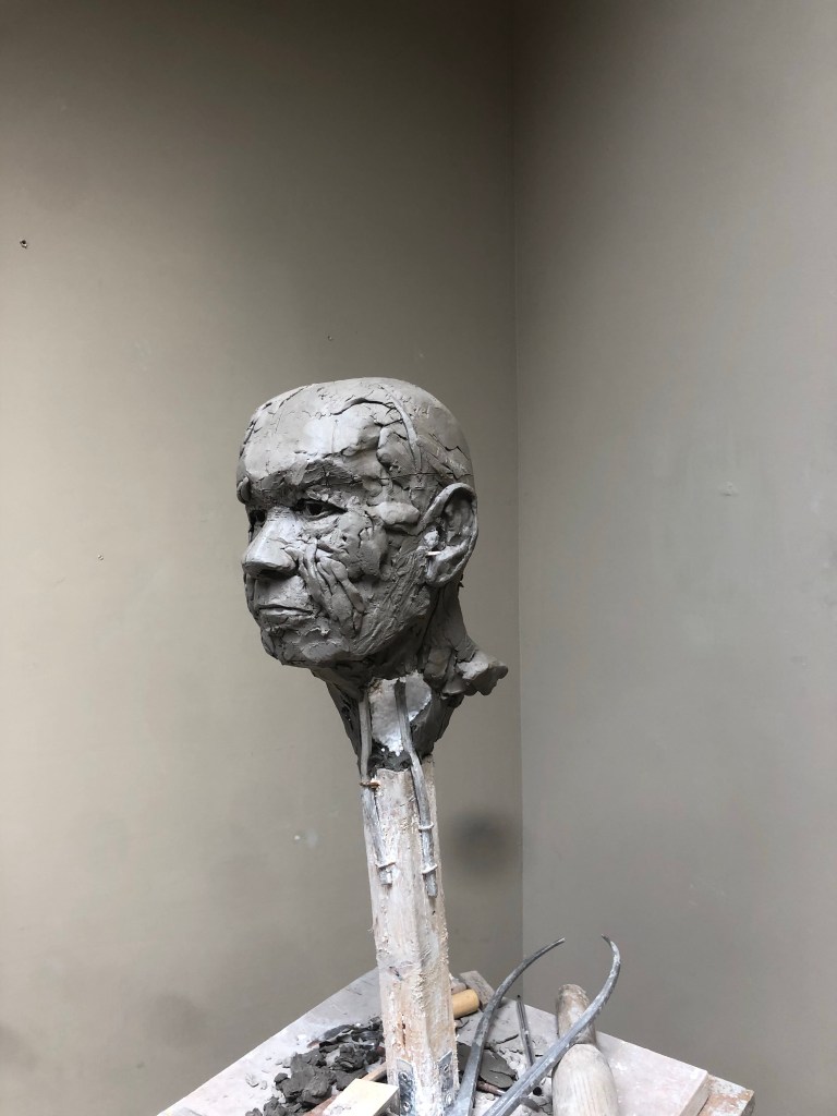 Not many notes today, good progress. Worked around a lot and not quite with it. Started by removing some clay at the back as head was getting very full. We working on the nose mostly, from the brow all the way to the nostrils.