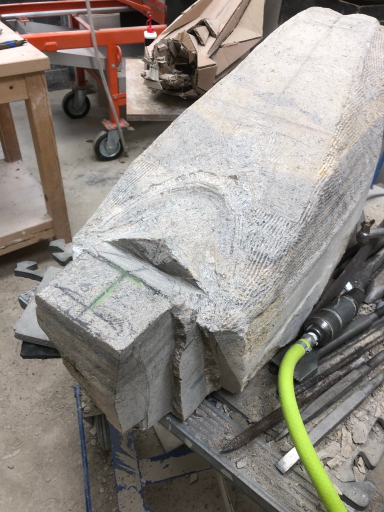 Carving was alright today, top of shoulders are almost in, folds looking better. Still to be more confident, hopefully that will come tomorrow. Got the pitch of the head in at the end so May work on that tomorrow to help get shoulders in.