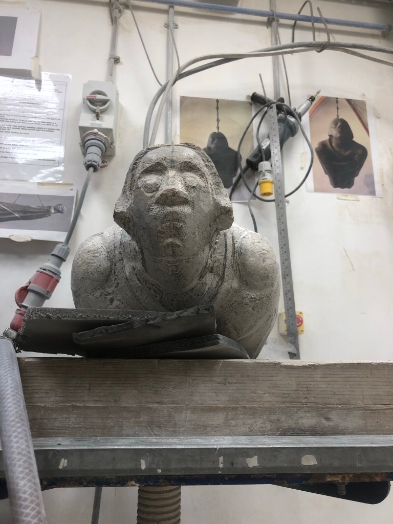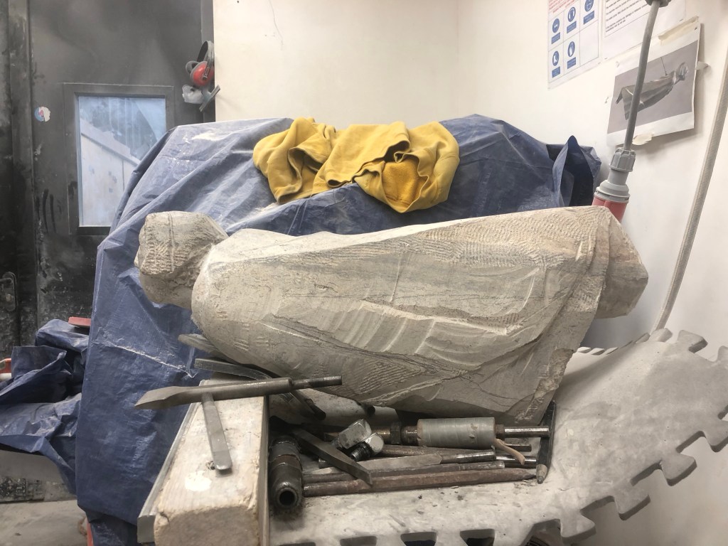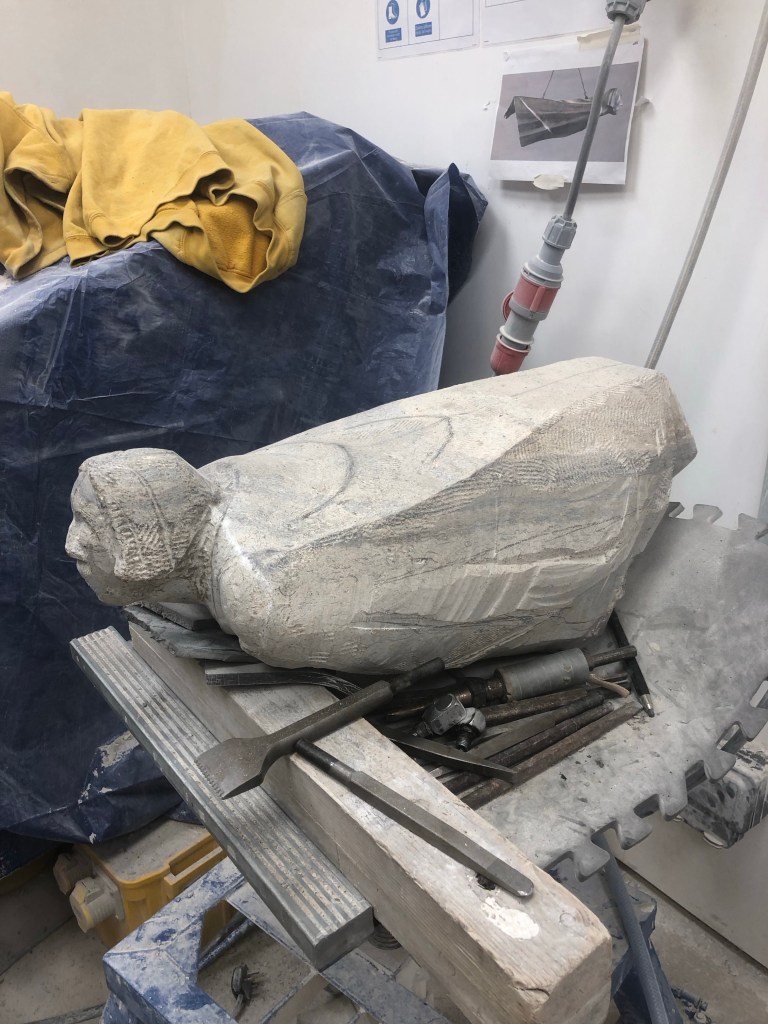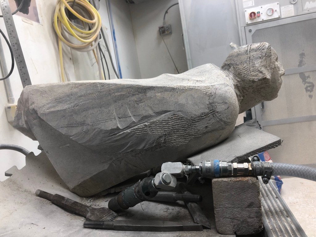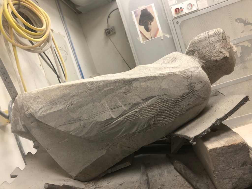 Working the top of the angel again, pushed down a fair amount, forms are feeling better now. Finished the day working the shoulders in relation to the changes on the top. While I’m happy with the placement of the shoulders and the collar something feels slightly askew so will have to keep a close eye on this as I continue and re-work them when the time is right.