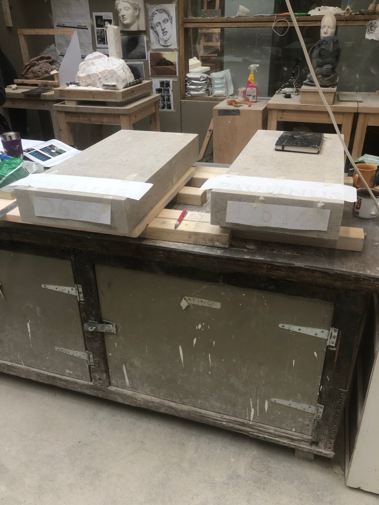 Resized and spaced the lettering to fit the new size of the blocks. Used GIMP and drawing. Then traced onto the polished (up to 500) blocks.