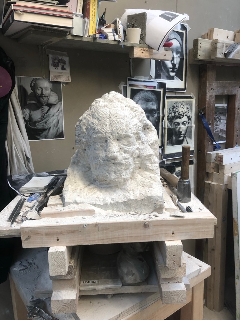 Starting to carve more freely and merely use the points as a reference to work between rather than blindly point like I did with Phil. Feeling confident I’ll finish.